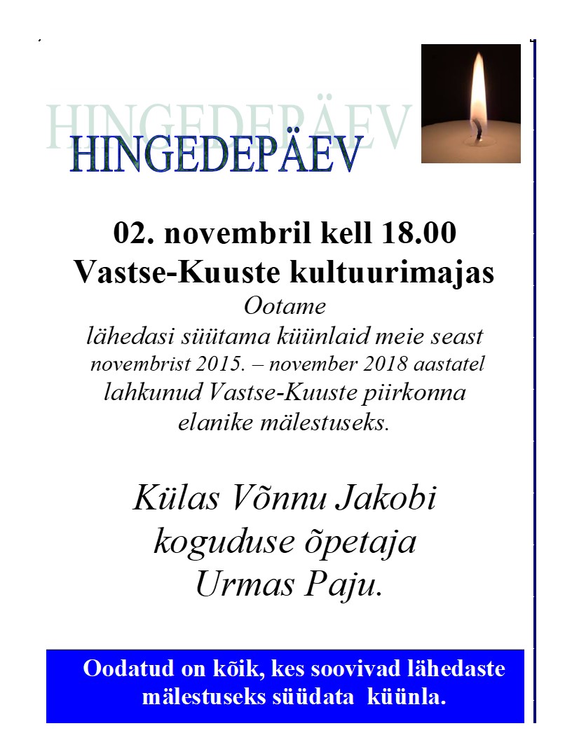 Hingedepäev Kõik üritused See üritus on möödunud. Hingedepäev 2. november 2018 @ 18:00 - 19:00 Event Navigation « KÄSITÖÖTUBA KINOÕHTU » KirjeldusKuupäev:2. november 2018Aeg:18:00 - 19:00