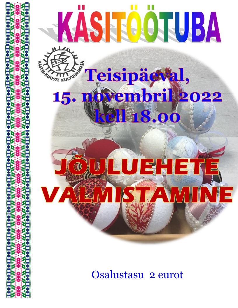 Käsitöötuba Kõik üritused See üritus on möödunud. Käsitöötuba 15. november 2022 @ 18:00 - 16. november 2022 @ 19:30 | 2 eurot Event Navigation « Kultuurimaja näitering sõidab etendusega külla! / Etendus Holstre Magasiniaidas lükkub edasi! Kultuurimaja näitering sõidab etendusega külla! » KirjeldusStart:15. november 2022 18:00End:16. november 2022 19:30Pilet:2 eurot