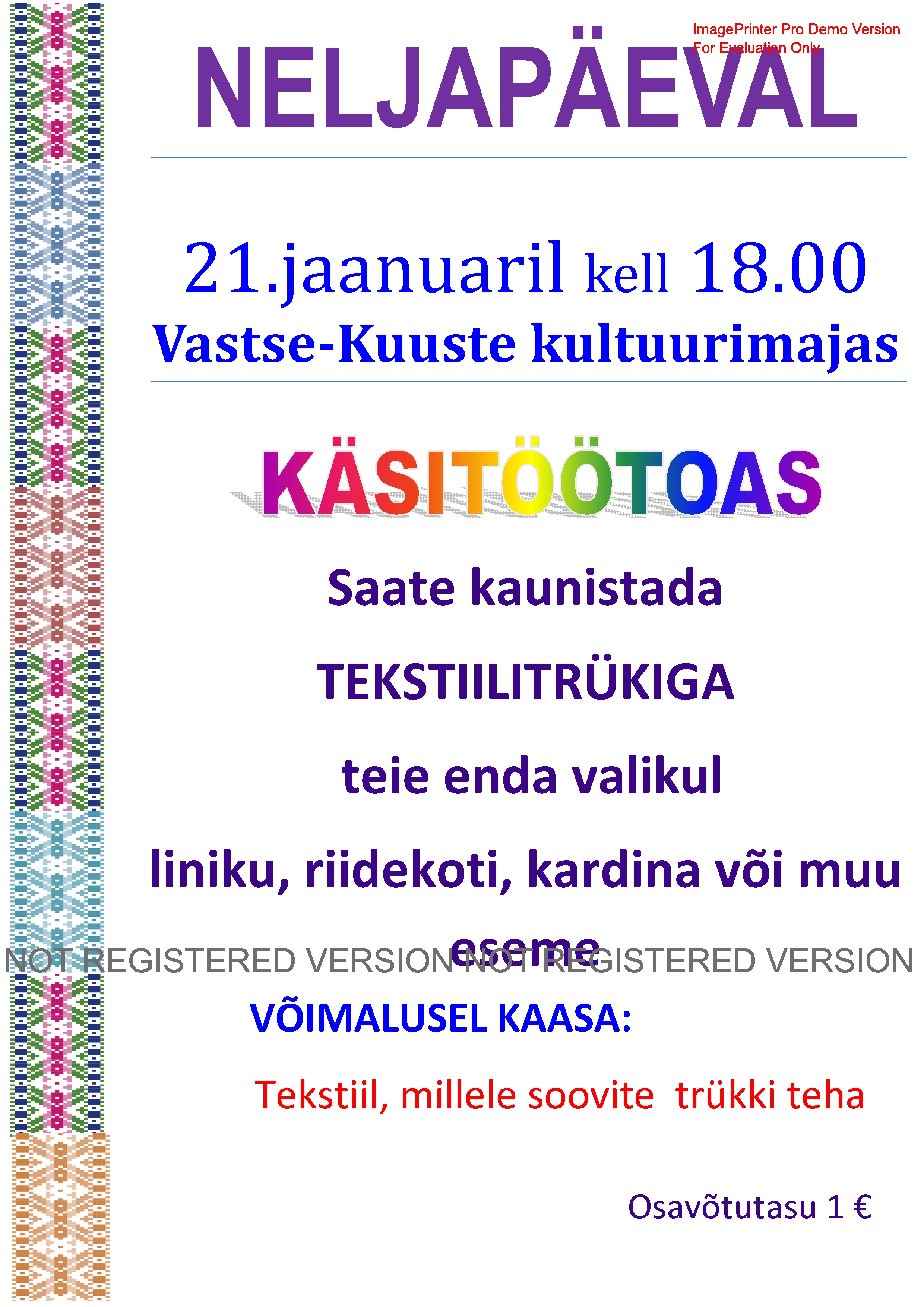 Käsitöötuba Kõik üritused See üritus on möödunud. Käsitöötuba 21. jaanuar 2016 @ 18:00 | 1€ Event Navigation « Käsitöötuba KÄSITÖÖTUBA » KirjeldusKuupäev:21. jaanuar 2016Aeg:18:00Pilet:1€