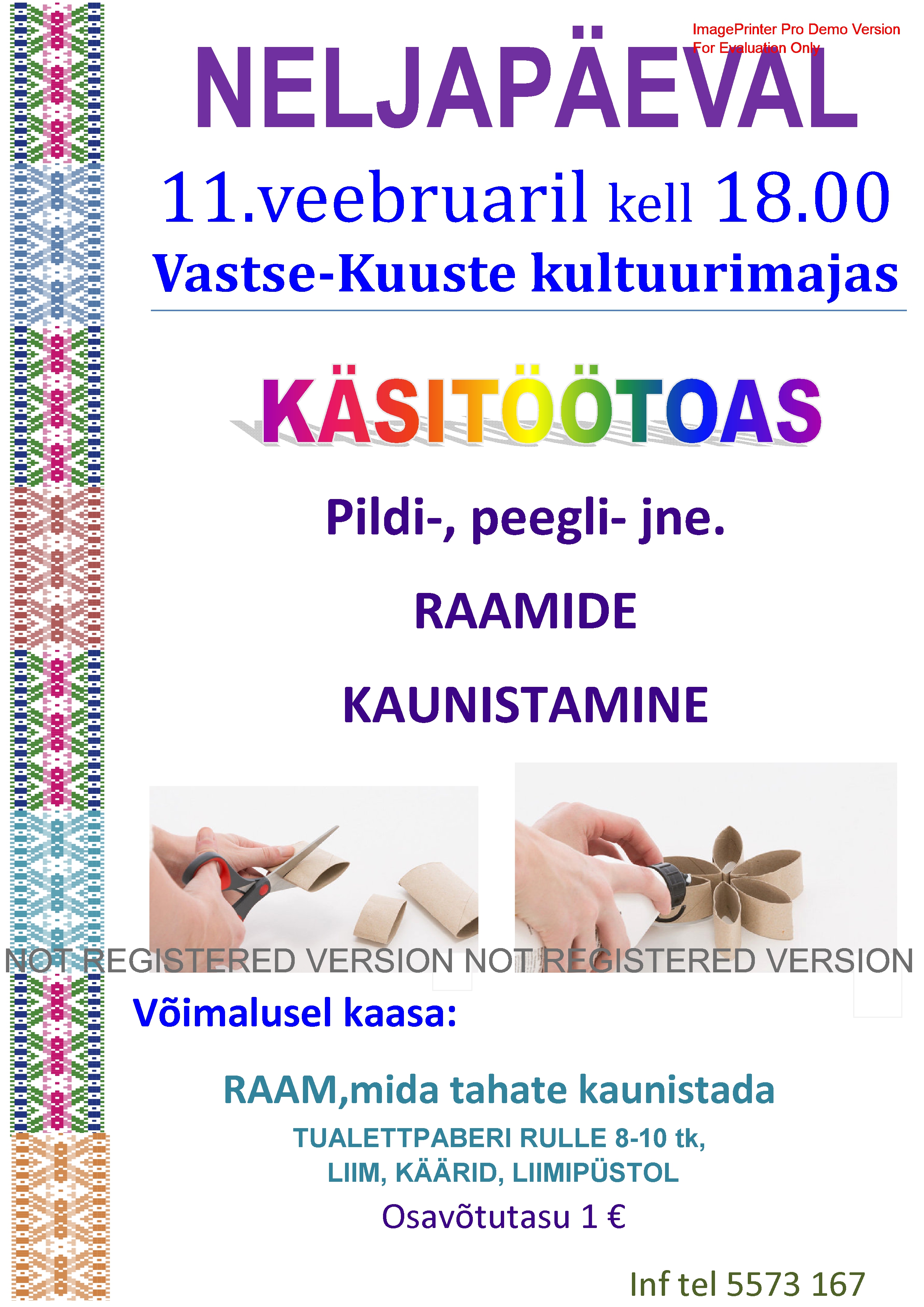 KÄSITÖÖTUBA Kõik üritused See üritus on möödunud. KÄSITÖÖTUBA 11. veebruar 2016 @ 18:00 | 1€ Event Navigation « Laste kino KINOÕHTU » KirjeldusKuupäev:11. veebruar 2016Aeg:18:00Pilet:1€