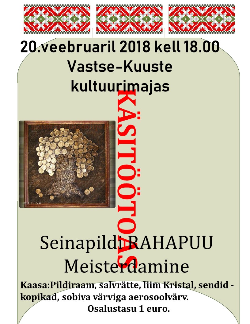 Käsitöötuba Kõik üritused See üritus on möödunud. Käsitöötuba 20. veebruar 2018 @ 18:00 - 19:30 | €1 Event Navigation « KINO TERVISEMATK » KirjeldusKuupäev:20. veebruar 2018Aeg:18:00 - 19:30Pilet:€1