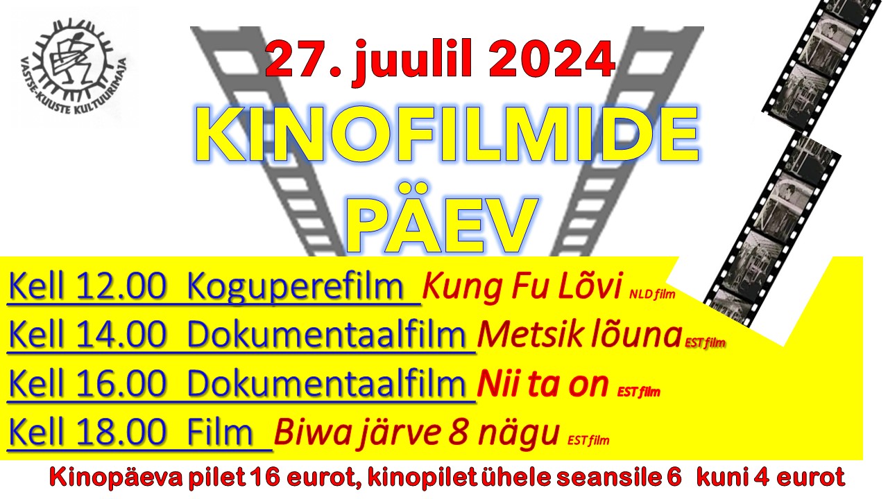KINOPÄEV. Eesti uuemad filmid ja veel…!! Kõik üritused See üritus on möödunud. KINOPÄEV. Eesti uuemad filmid ja veel…!! 27. juuli 2024 @ 12:00 - 20:00 | 4-6 € Event Navigation « Jakob Hurt 185 Järvemuusika kontsert Leevijõe paisjärvel! » KirjeldusKuupäev:27. juuli 2024Aeg:12:00 - 20:00Pilet:4-6 €