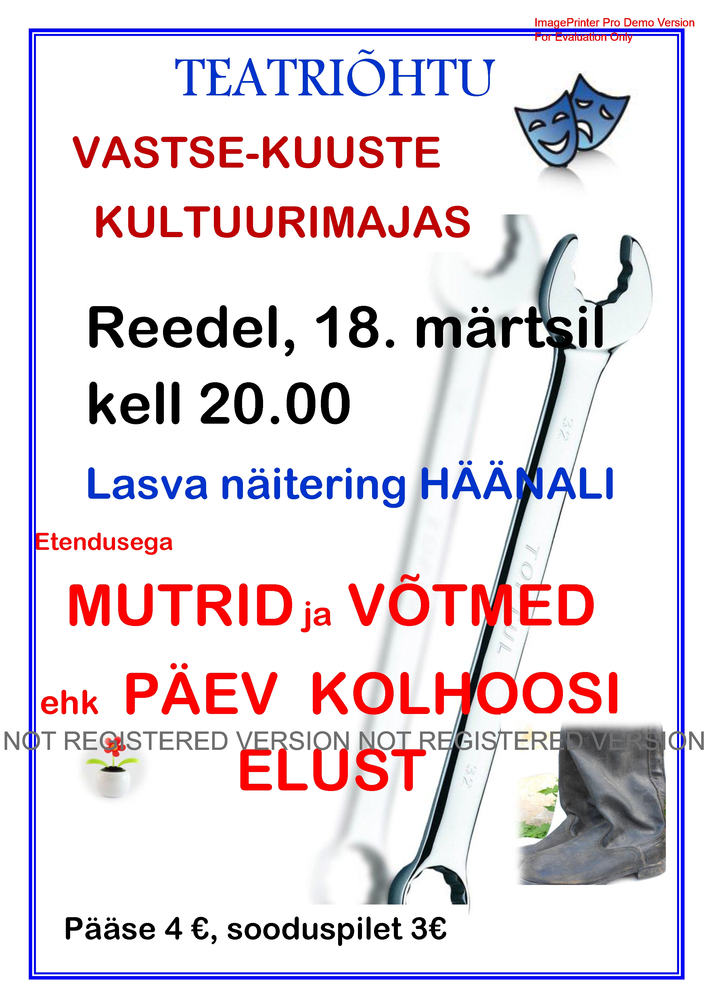 TEATRIETENDUS Kõik üritused See üritus on möödunud. TEATRIETENDUS 18. märts 2016 @ 20:00 - 21:20 Event Navigation « KÄSITÖÖTUBA NÄITUS - MÜÜK » 18. märts kuulutus Mutrid ja KirjeldusKuupäev:18. märts 2016Aeg:20:00 - 21:20