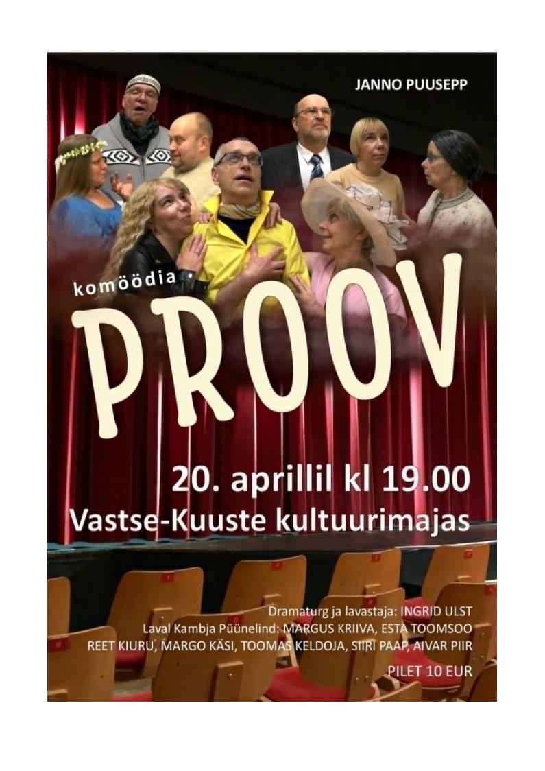 Teatriõhtu. Teatritrupilt Püünelind näitemäng ” Proov” Kõik üritused Teatriõhtu. Teatritrupilt Püünelind näitemäng ” Proov” aprill 20 @ 19:00 - 20:30 | 10 € Event Navigation « Kagu -Eesti vokaalansamblite laulupäev. KirjeldusKuupäev:20. aprill 2026Aeg:19:00 - 20:30Pilet:10 €